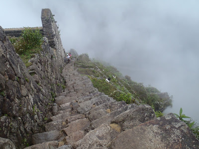 Me despedí de todo el grupo y continué el recorrido sola ya que después de la explicación con los guías, teníamos tiempo libre en Machu Picchu y cada quién escogía su camino. Llegué a tiempo a la entrada de Huaynapicchu (que tiene diferentes formas de escritura pero es la que más me gusta). Vi la imagen de todo lo que iba a subir y pues me preparé psicológicamente para subir y subir y subir. Tardé una hora exacta en hacerlo. Una hora subiendo escalones es mucho más pesado de lo que se lee, ¡se siente como si fueran 3 horas!