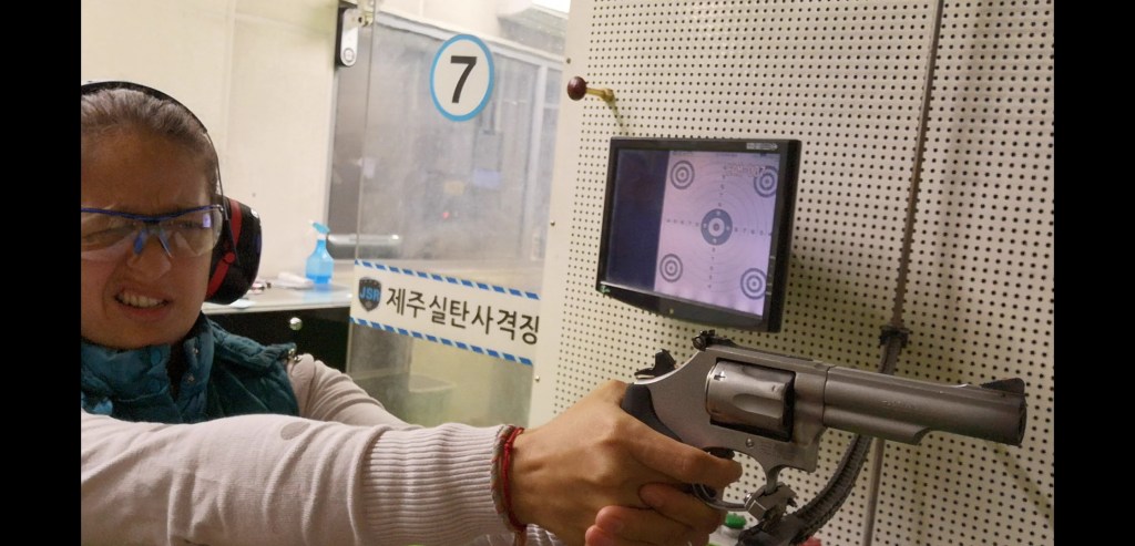 Después de un día bastante relajado en la playa con mi libro. Estaba lista para disparar unas cuantas balas. Siempre había querido disparar una pistola. Cuando era niña mi papá nos compró un rifle a mi hermano y a mí y era súper divertido dispararle a las figuras de metal en el campo.